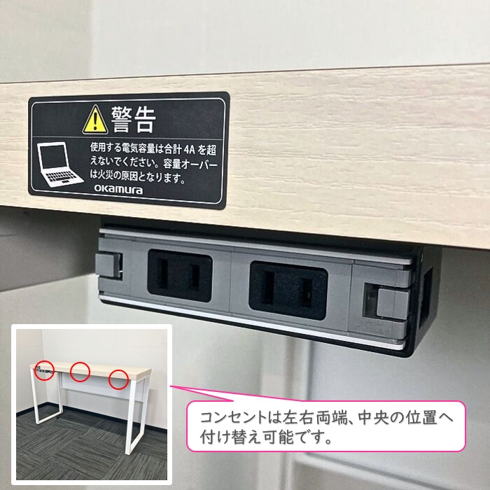 コンセントの位置は左右両端、中央に付け替えが可能です。