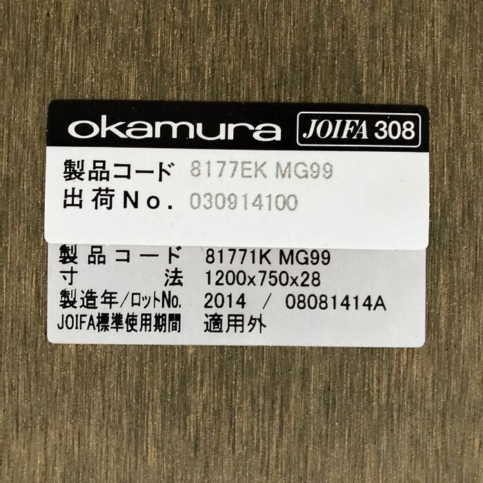 オカムラ 8177シリーズ 会議用テーブル 8177EK MK37 W1200×D750×H720 天板:ホワイト/脚:シルバー 2014年製 中古 ⑳