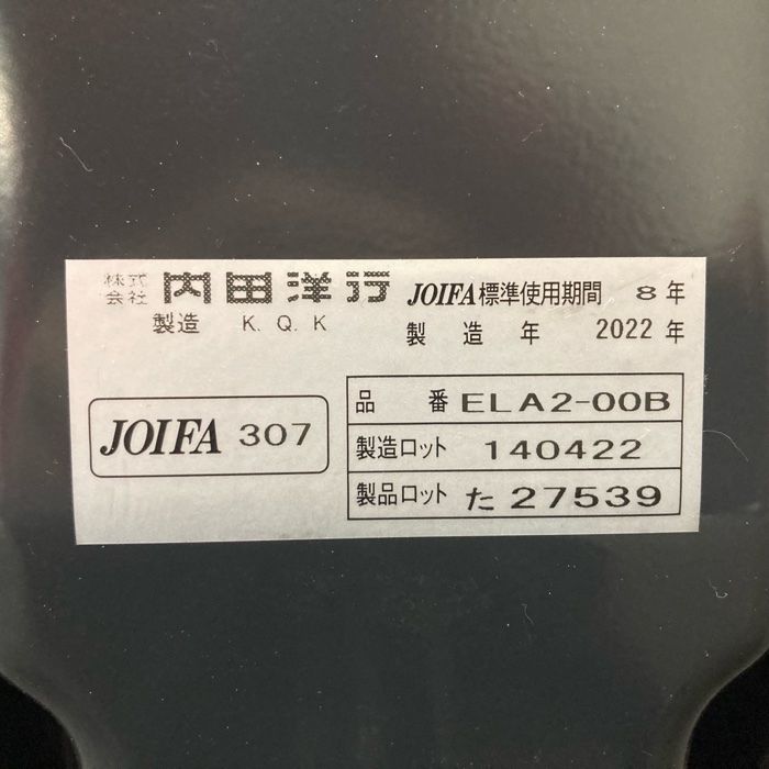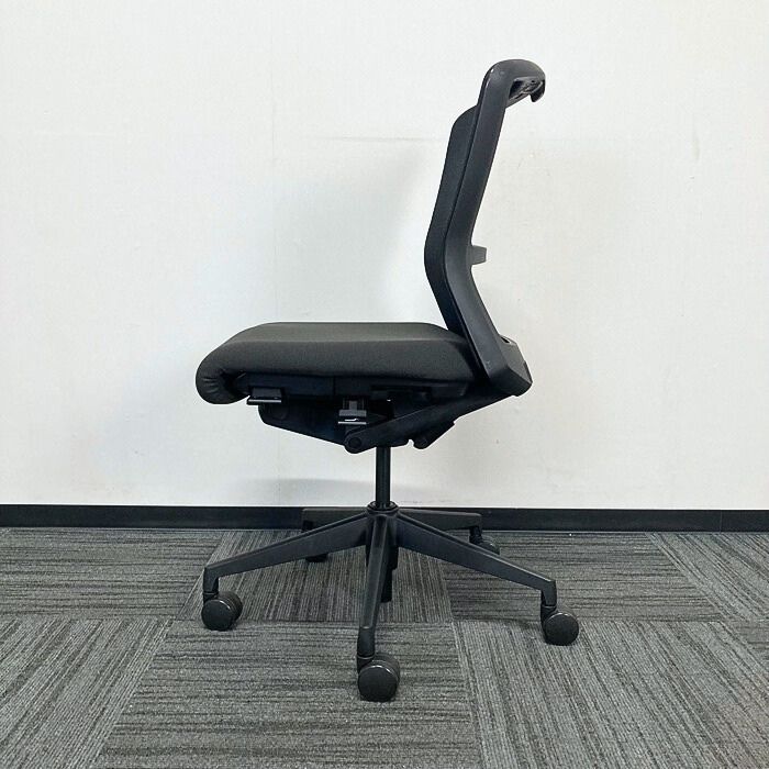 内田洋行 エルフィチェアシリーズ オフィスチェア 品番:ELA2-00B ミドルバック 背座:ジェットブラック/フレーム:ブラック 2022年製 中古