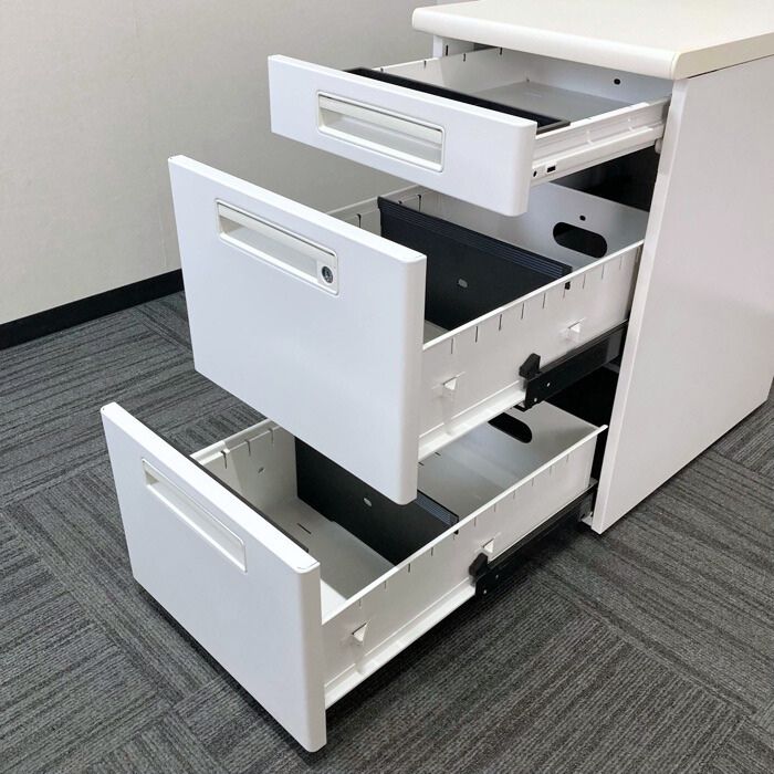 ナイキ XED型シリーズ 3段脇机 W400×D700×H720 ホワイト 中古 ⑩