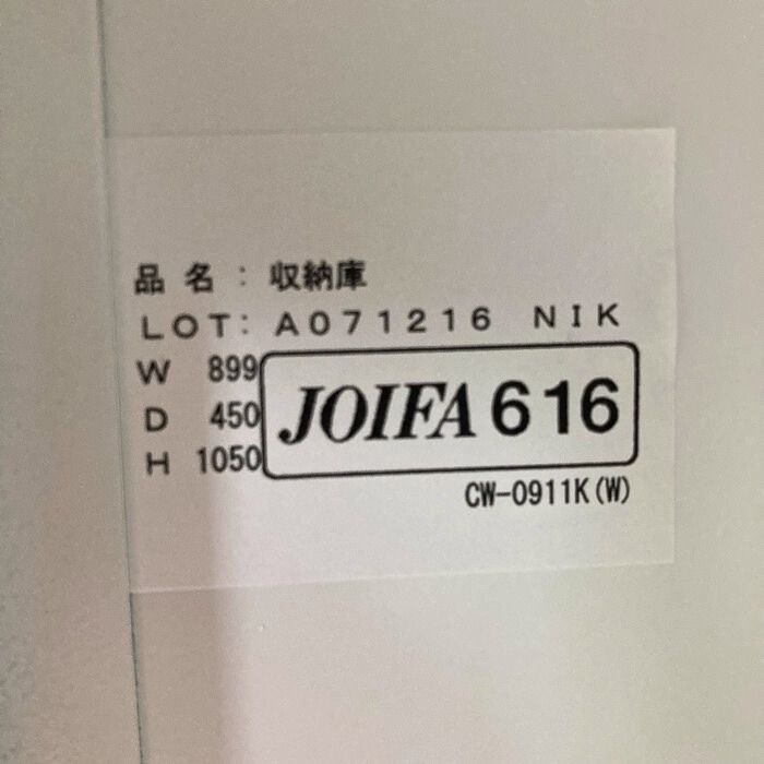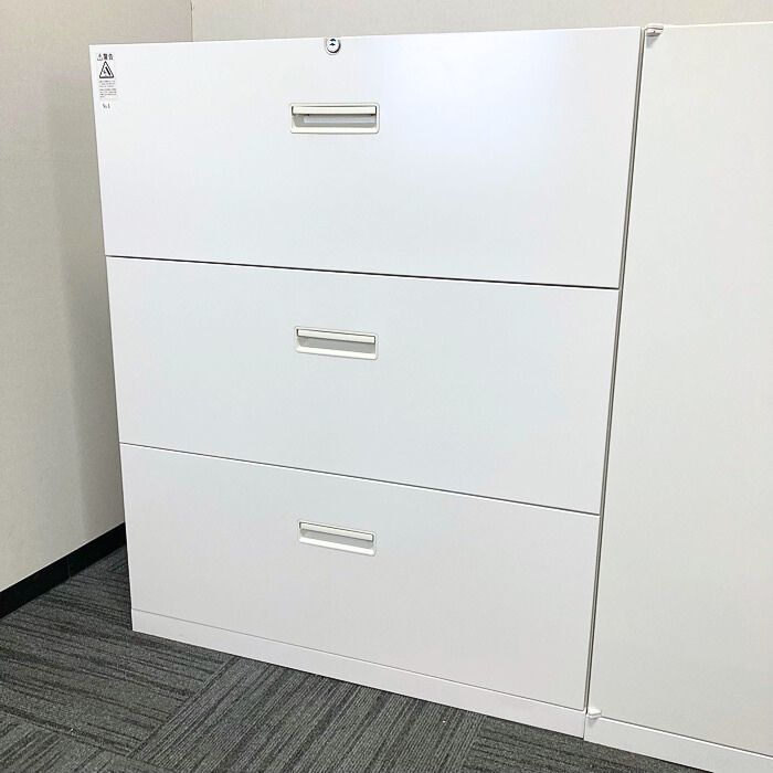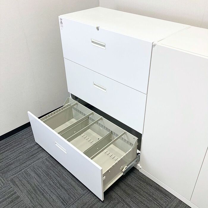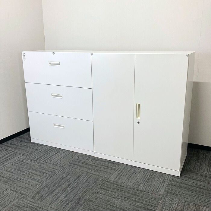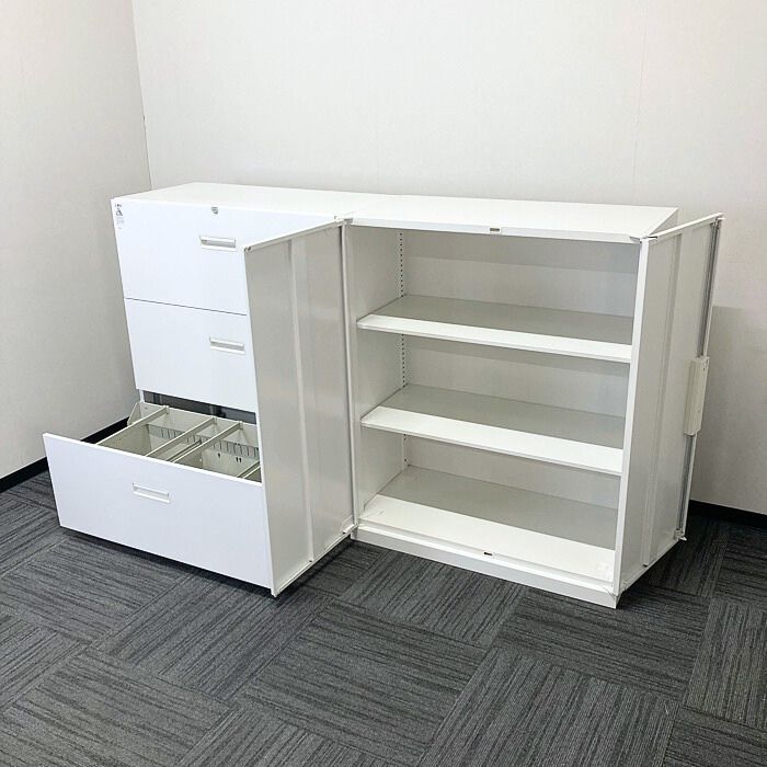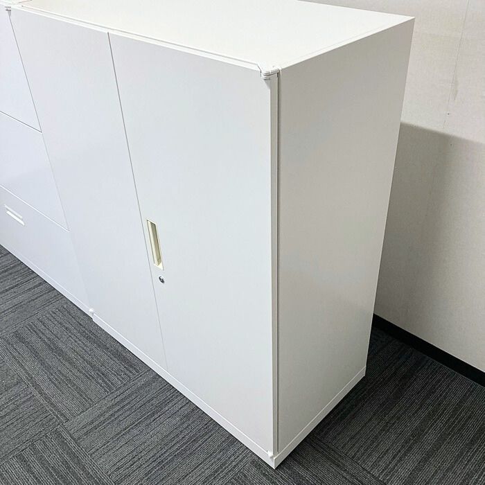 ナイキ CW型シリーズ 両開き書庫+3段ラテラルキャビネット[下置き用] W899×D450×H1100(単体) ホワイト 2016年製 中古 ⑩