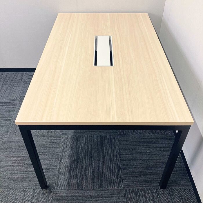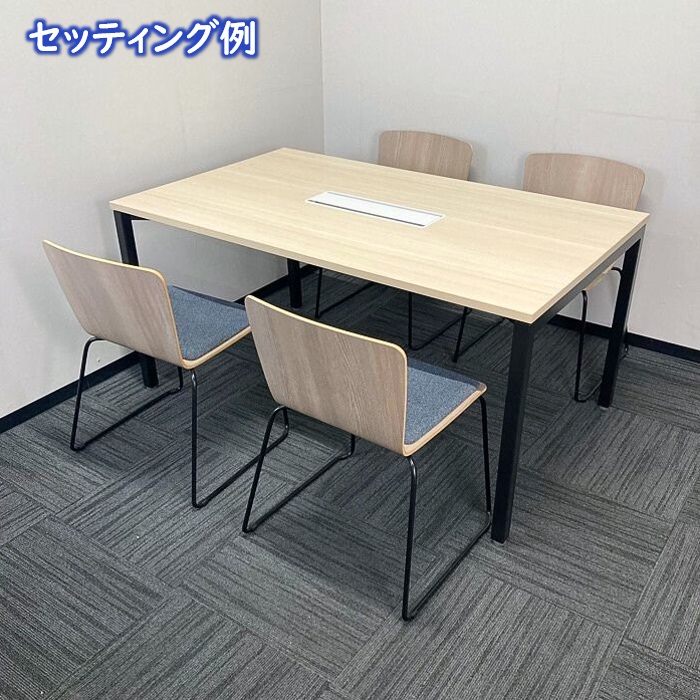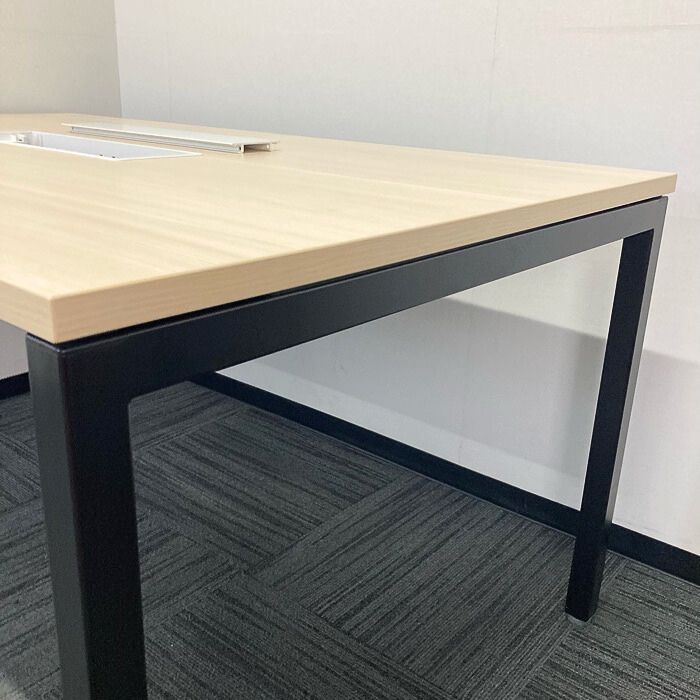 内田洋行 notioシリーズ ミーティングテーブル[配線ボックス付き] 型番:6-168-8333 W1500×D900×H720 天板:ライトファインウッド/脚:エルブラック 2021年製 中古 ⑩