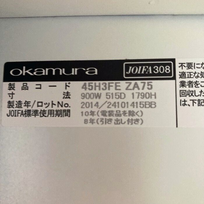 オカムラ FZタイプシリーズ 3人用ロッカー[ダイヤル錠] 45H3FE ZA75 W900×D515×H1790 ネオホワイト 2014年製 中古