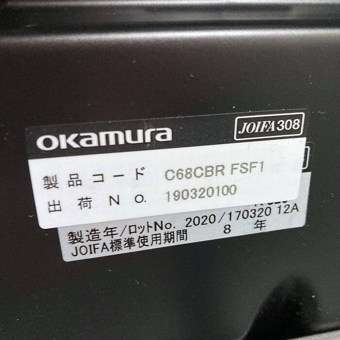 オカムラ シルフィーチェアシリーズ オフィスシーティング[アジャストアーム付き ] C68CBR FMP1 エクストラハイバック 背/座:ブラック 2020年製 中古