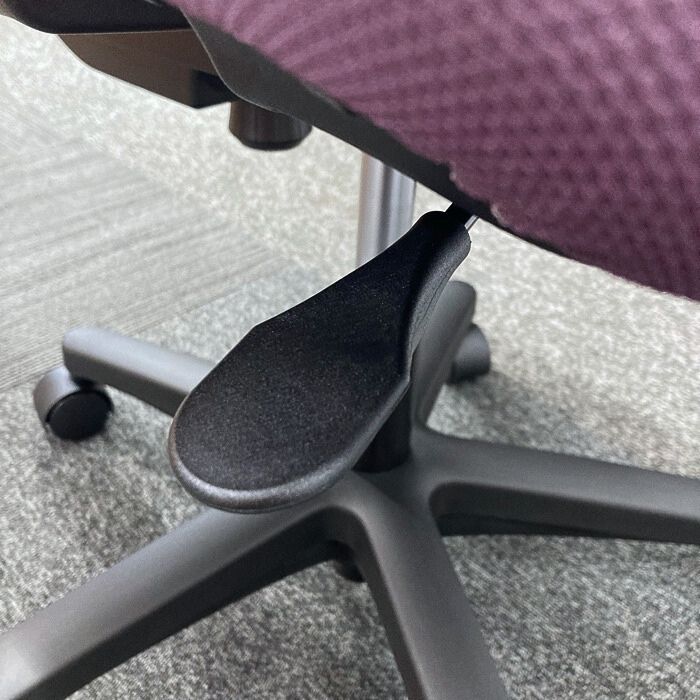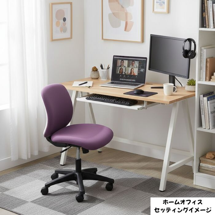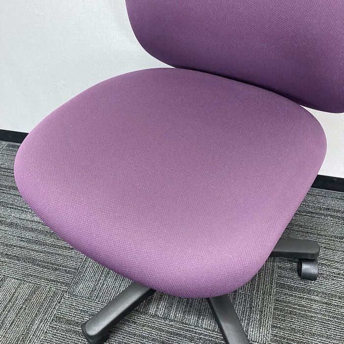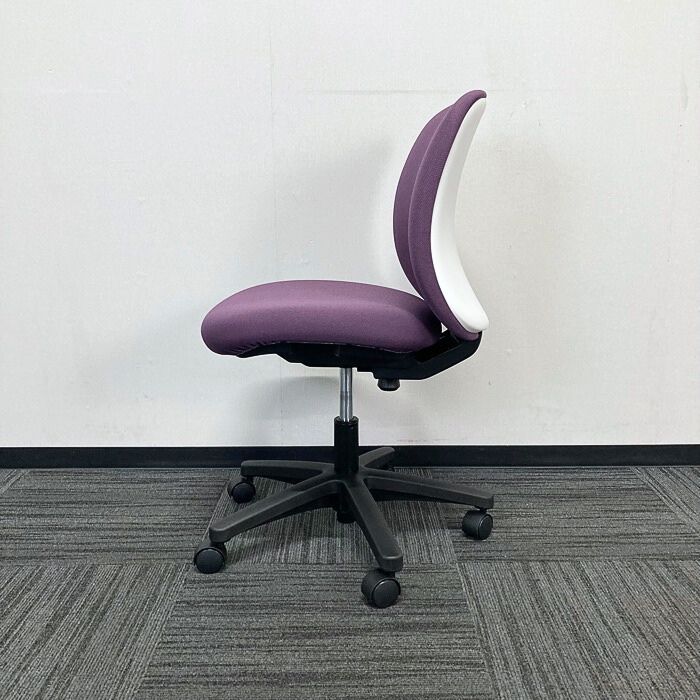 - 丸みを帯びた柔らかい印象のデザインと上品なプラムパープル色のカラーリングに、座り心地の良い厚めの背座のクッションが特徴的なオフィスチェアです。