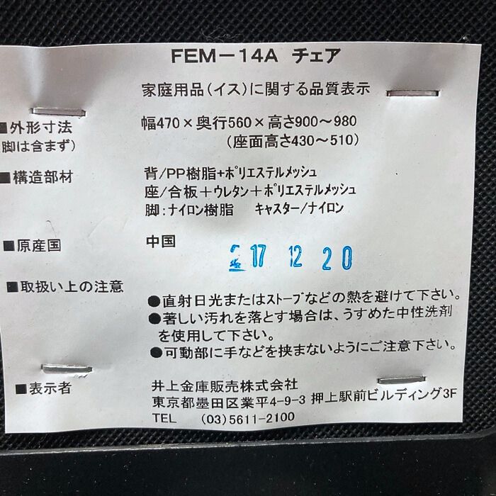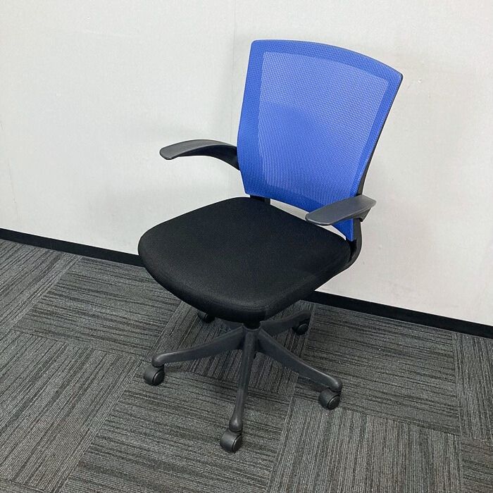 イノウエ FEMシリーズ オフィスチェア肘あり FEM-14A 背:ブルー/座:ブラック 2017年製 中古 ⑳