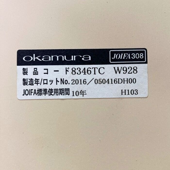 オカムラ コーナーテーブル 8346TC W928 W450×D550×H500 天板:ナチュラル系/脚:シルバー 2016年製 中古