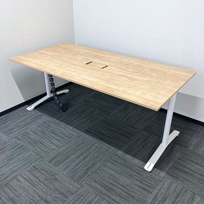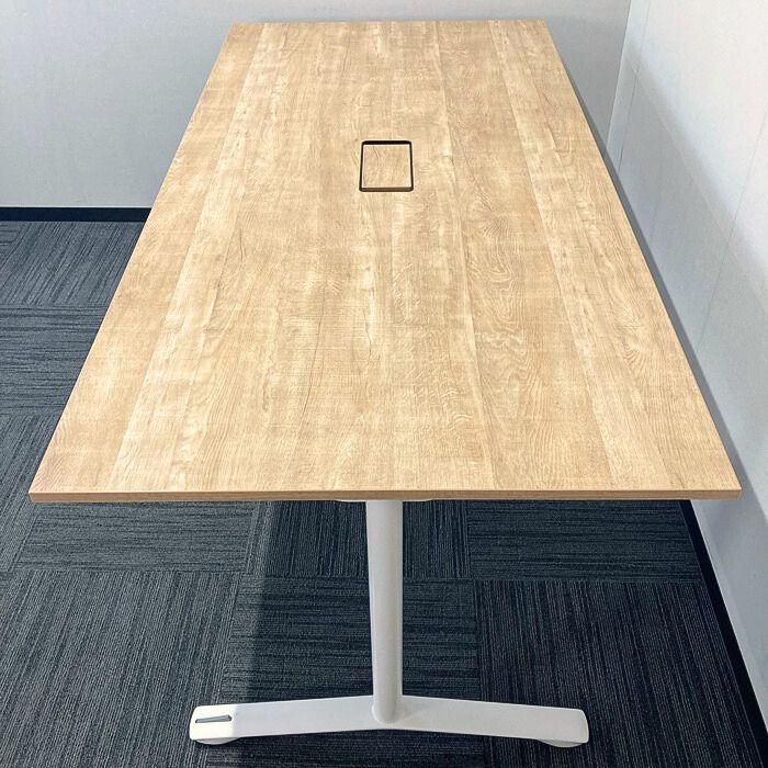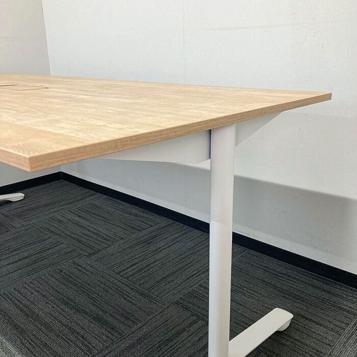 イトーキ ノットワークシリーズ ミーティングテーブル[キャスター付き] DLJP-1809HW-26 W1800×D900×H720 天板:トリニティオークライト/脚:ホワイト 2021年製 中古