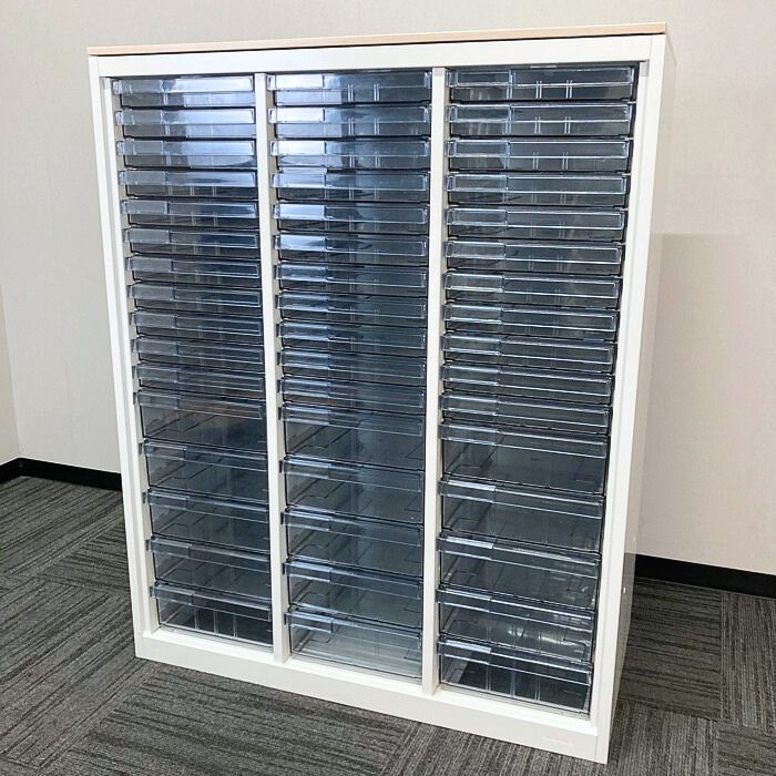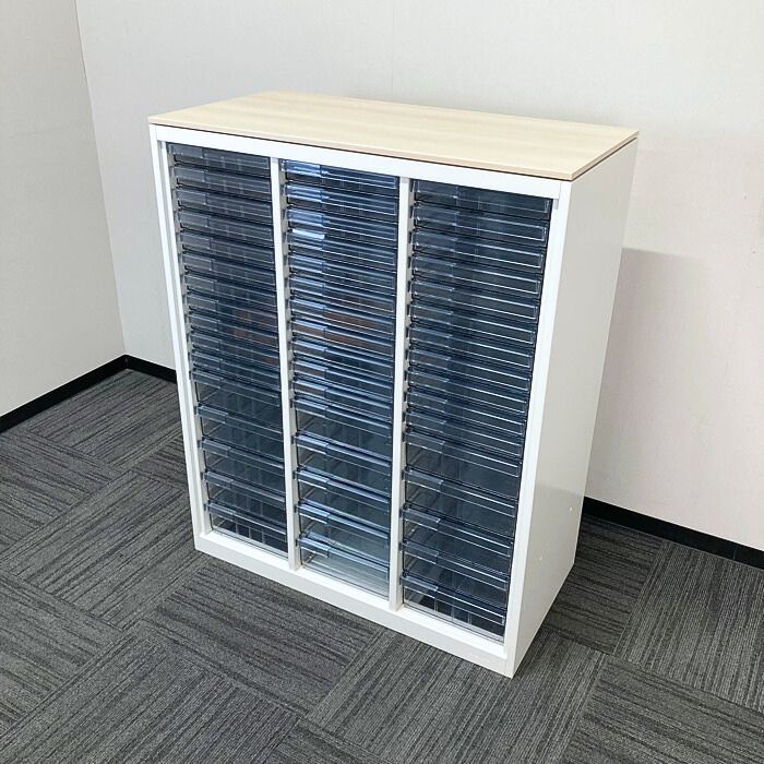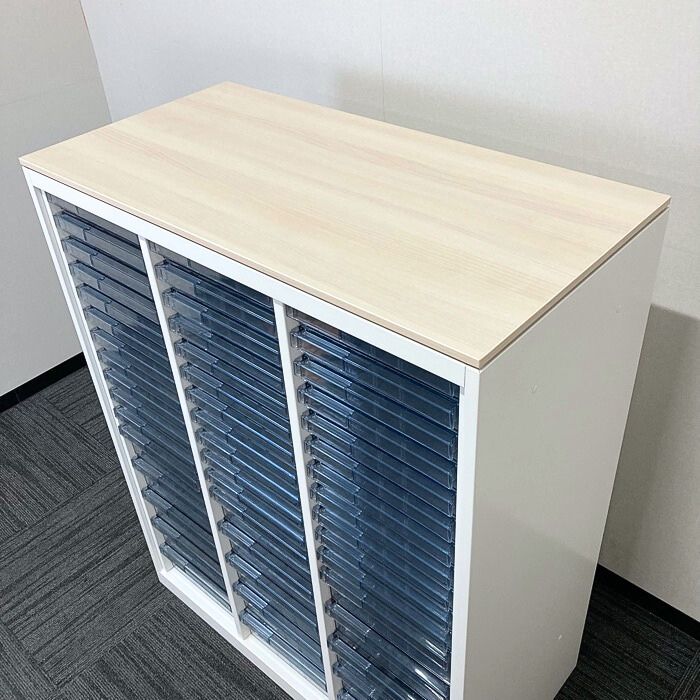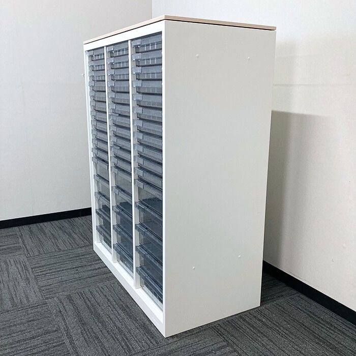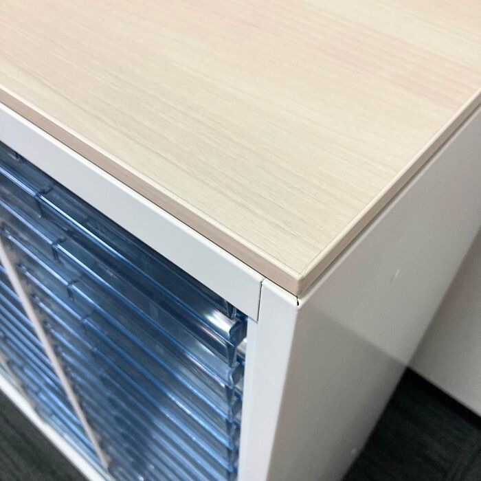 オカムラ レクトラインシリーズ クリスタルトレイ[浅型33段/深型15段] 4B03AC ZA75 W900×D450×H1115 天板:プライズウッドライト/本体:ネオホワイト 2019年製 中古