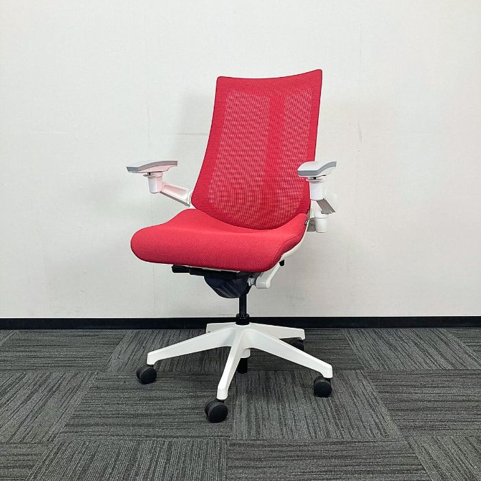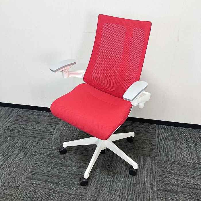 イトーキ アクトチェアシリーズ タスクチェア [アジャスタブル肘]KG-477JV-W9M4 プレーンメッシュバック ラズベリーレッド 2024年製 中古