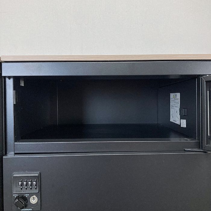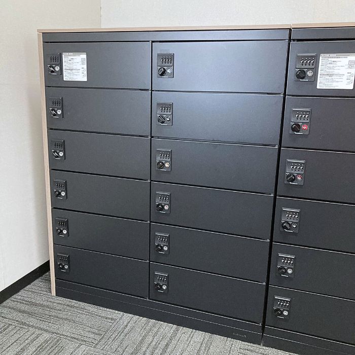オカムラ モバイル機器保管庫シリーズ モバイルロッカー2台セット[2列6段12庫] 4ZY1EW ZK25 W1840×D450×H1115 天板:プライズウッドミディアム/本体:ブラック 2022年製 中古