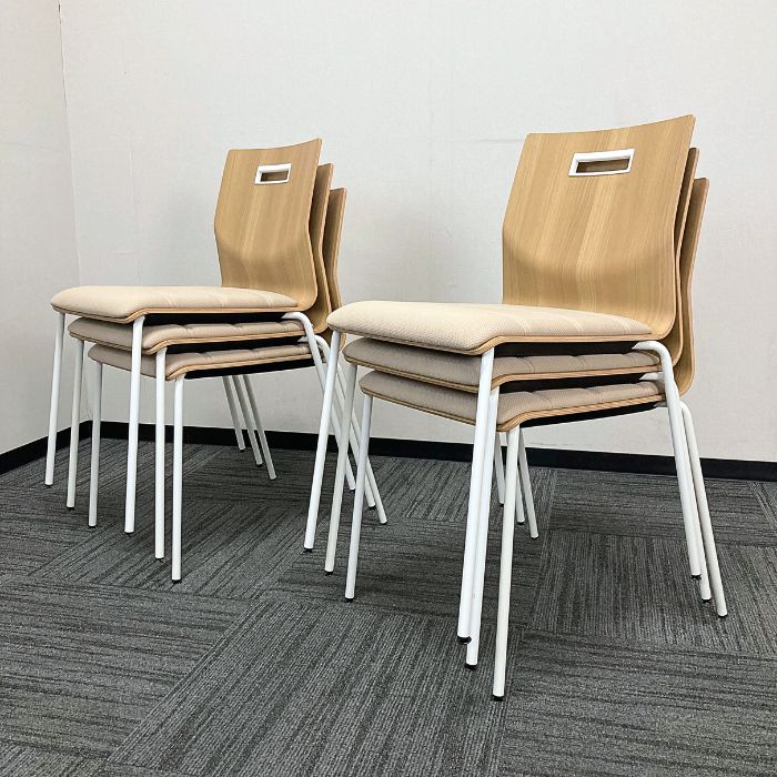 オカムラ スイープシリーズ ミーティングチェア[6脚セット販売] L409WY F026 背:プライズウッドミディアム/座:オーツ 2021~2023年製 中古