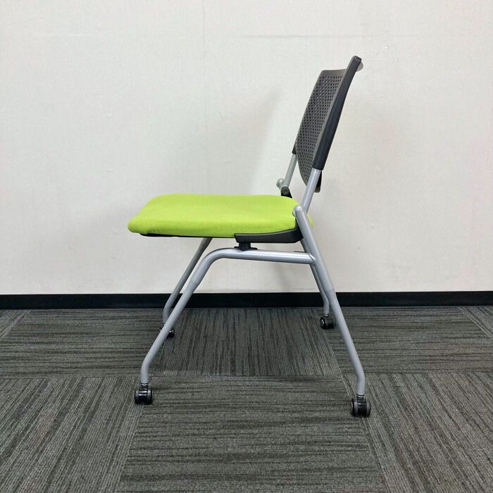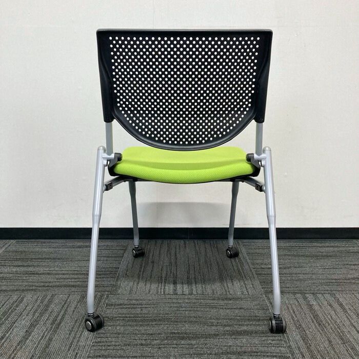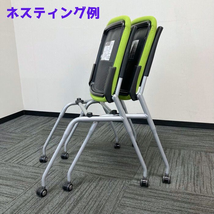 オカムラ プロスタックシリーズ ミーティングチェア[ネスティングタイプ] 8140ZZ FXN3 背:ブラック/座:ライムグリーン 2021年製 中古
