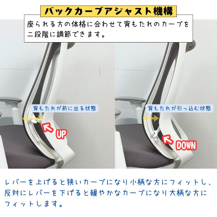 バックカーブアジャスト機構や前傾姿勢付きの背座シンクロリクライニングなどその他にも多彩な機能を搭載。