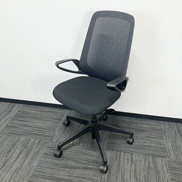 イトーキ ノートチェアシリーズ タスクチェア[ループ肘] KJ-176JE-T1T1 テクスチャードクロスバック ハイバック 背座:ブラック/ブラックフレーム 2023年製 中古