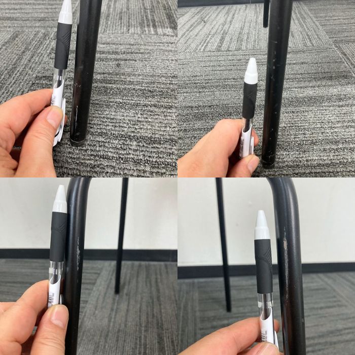 1脚のみ座面に薄いシミあり、4脚とも脚部に小キズあり(画像参照)