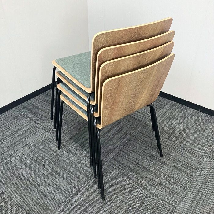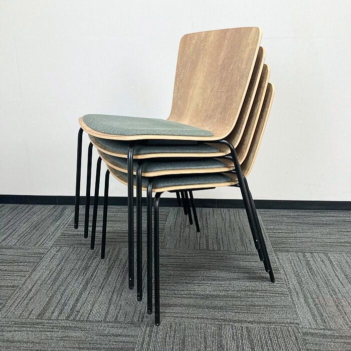 オカムラ ライブス カフェチェアシリーズ 会議用チェア[4脚セット] L4234G GF88 シェル:ビンテージエルム/座:ダークグリーン 2023年製 中古