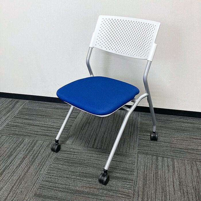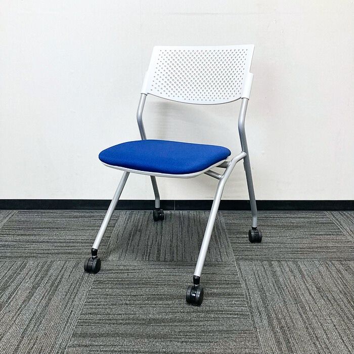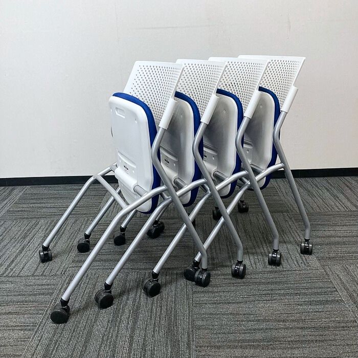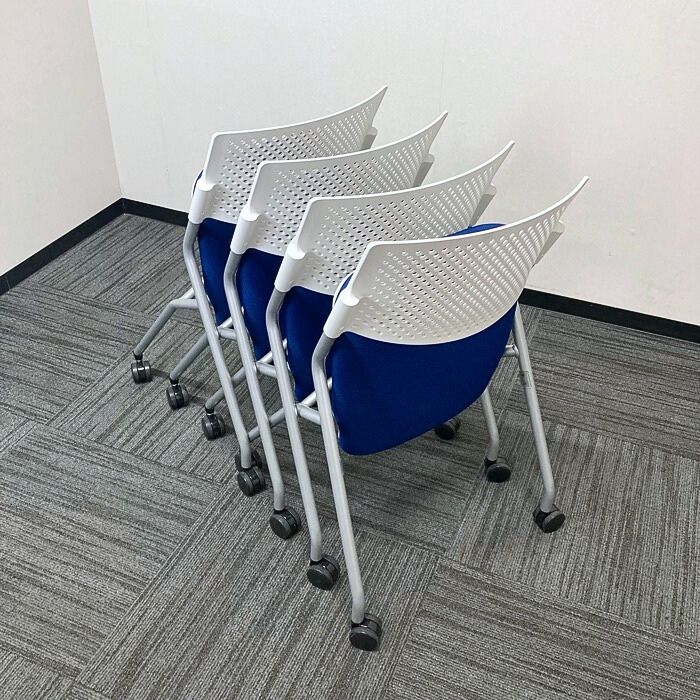 内田洋行 FM-265シリーズ ネスティングチェア[4脚セット販売]  背:ホワイト/座:ブルー 2022年製 中古