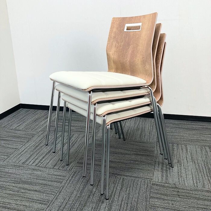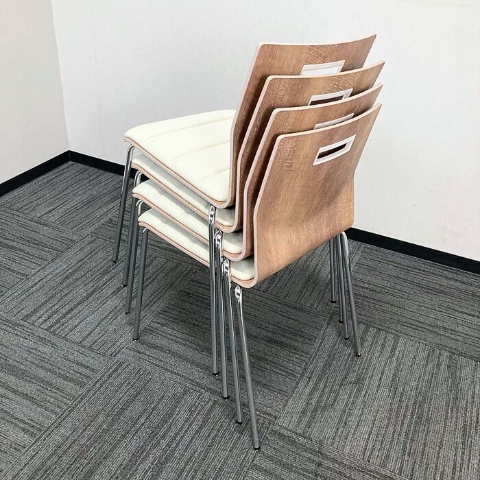 オカムラ スイープシリーズ ミーティングチェア[4脚セット販売] L409WX F024 背:プライズウッドライト/座:バニラ 2022年製 新古品