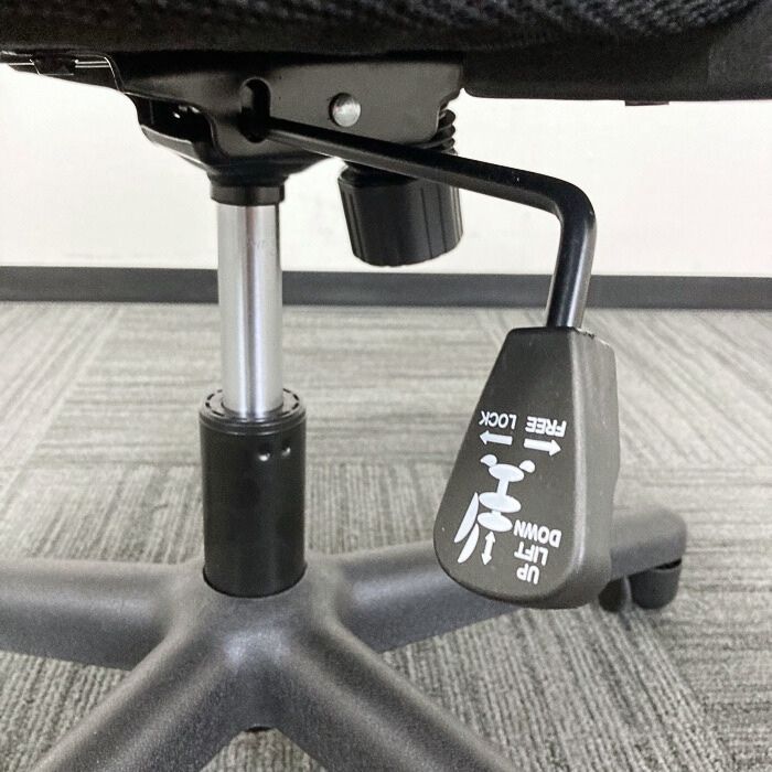背はメッシュ生地で通気性に優れ、機能は座面の上下調節とロッキングが可能です。