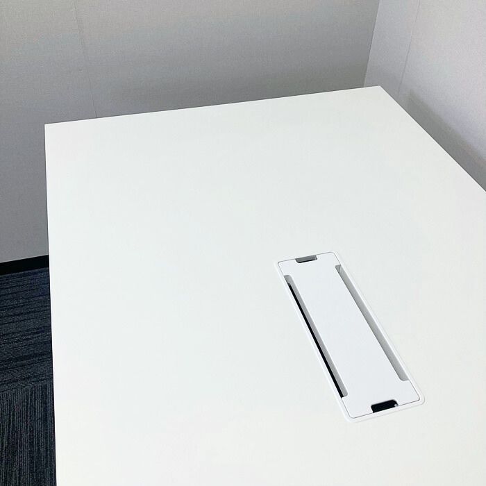 天板中央に配線ボックスが付いておりますので、OAタップなどを入れることでモバイルの充電も可能となります。