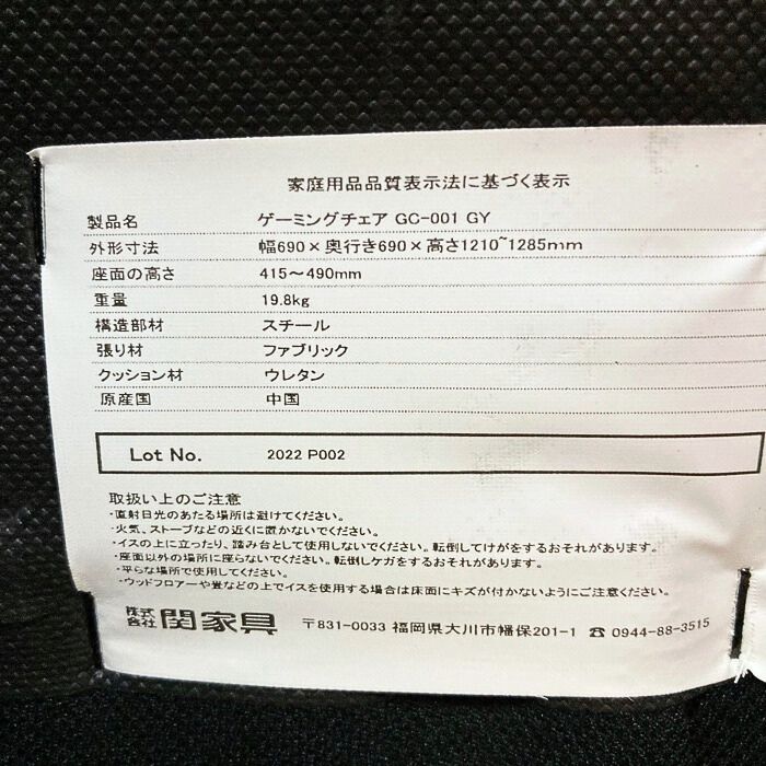 関家具 Contieaks ゲーミングチェア[3Dアームレスト/オットマン付き] ブラック 2022年製 中古