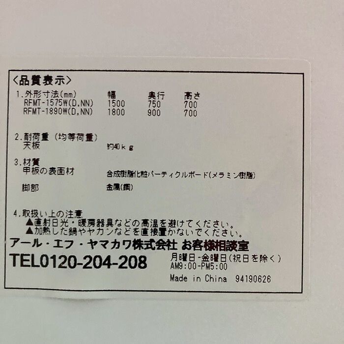 アールエフヤマカワ ミーティングテーブル W1500×D750×H700 天板:ホワイト/脚:シルバー 中古