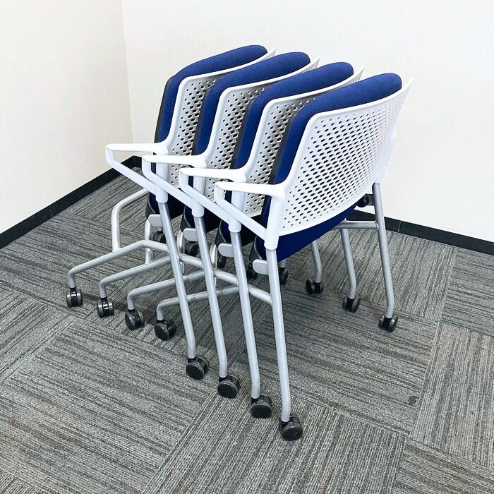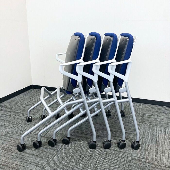内田洋行 FM-345シリーズ ネスティングチェア[4脚セット販売] FM-345 WS ダークブルー 2022年製 中古
