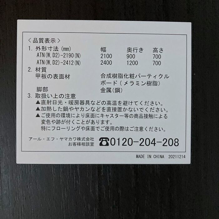 ・天板:低圧メラミン樹脂化粧木質ボード、PVCエッジ