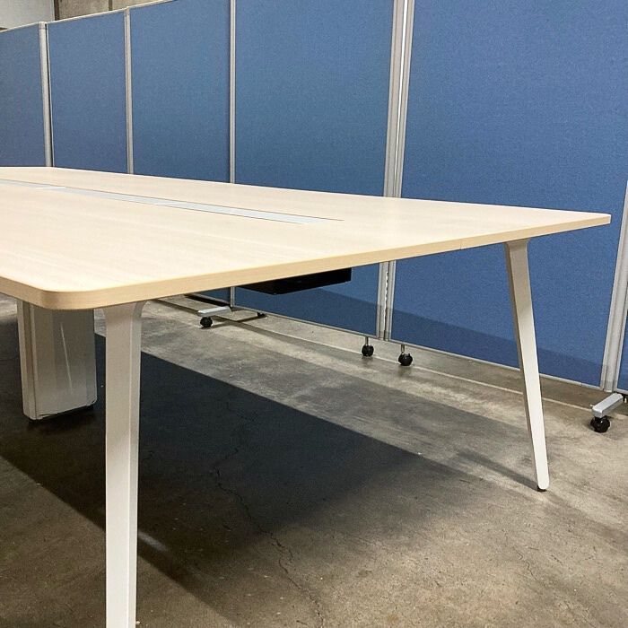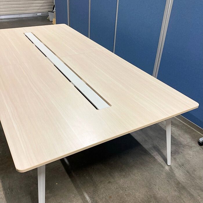 内田洋行 レムナシリーズ 大型会議用テーブル W2400×D1400×H720 天板:ライトファインウッド/脚:オフホワイト 2019年製 中古 ➉