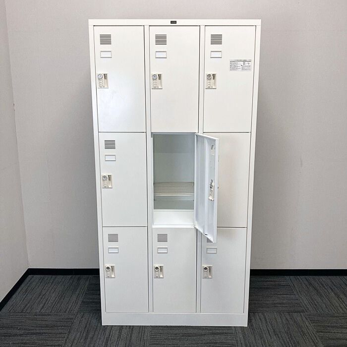 内田洋行 システムロッカーNS型3連3段シリーズ 9人用ロッカー[ダイヤル錠] W900×D515×H1790 ホワイト 2016年製 中古