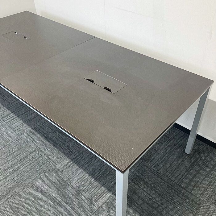 アール・エフ・ヤマカワ 大型会議用テーブル W2100×D900×H700 天板:ダークブラウン/脚:シルバー 中古