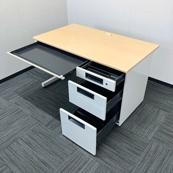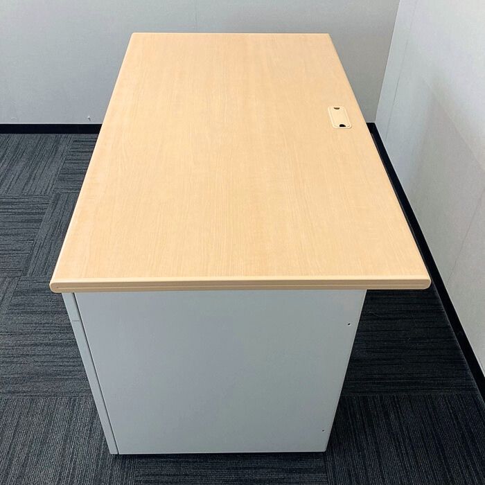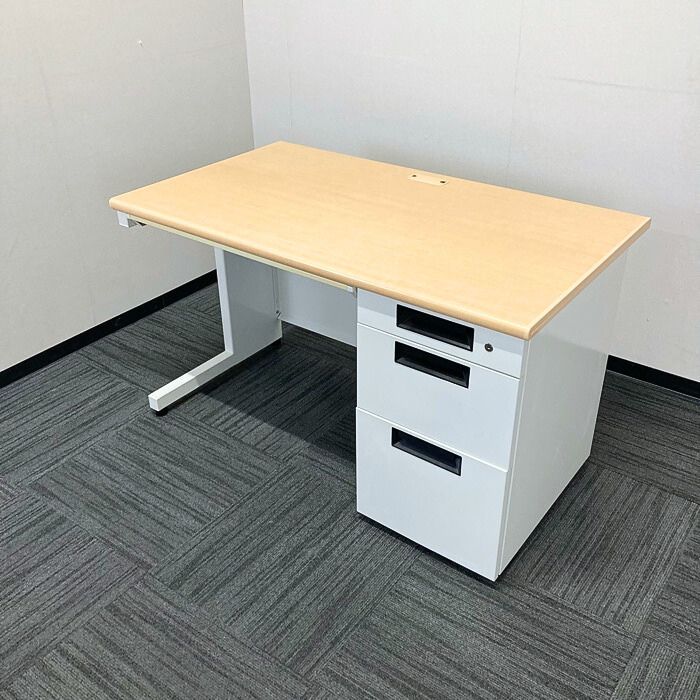 プラス フラットラインシリーズ 片袖デスク SP-T127 WM W1200×D700×H700 天板:ナチュラル/本体:ホワイト 2013~2014年製 中古