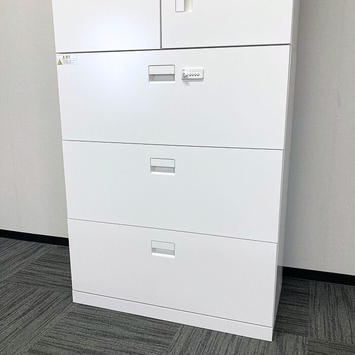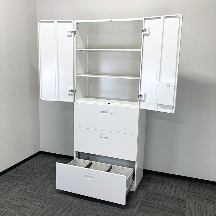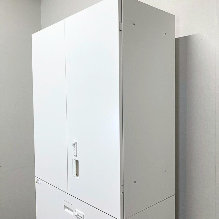 イトーキ エスキャビネットシリーズ 両開き書庫+ラテラルキャビネット[上下ダイヤル錠] W900×D450×H2136 ホワイト 2022年製 中古