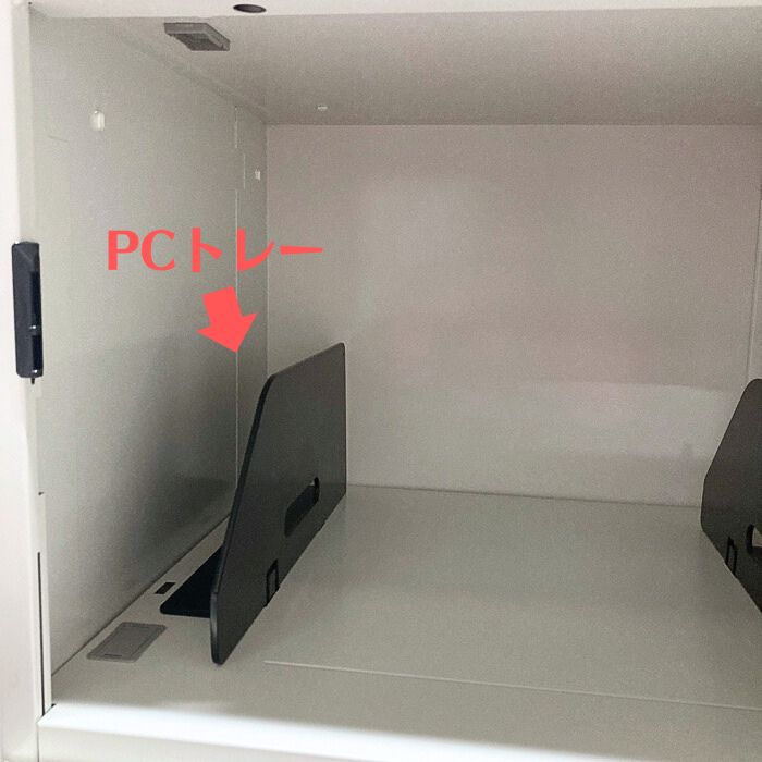 庫内底面には配線用穴(キャップ付)が設けられており、延長コードなどを用いてノートPCなどの充電が可能です。(※配線コードは別売りです)