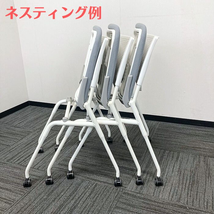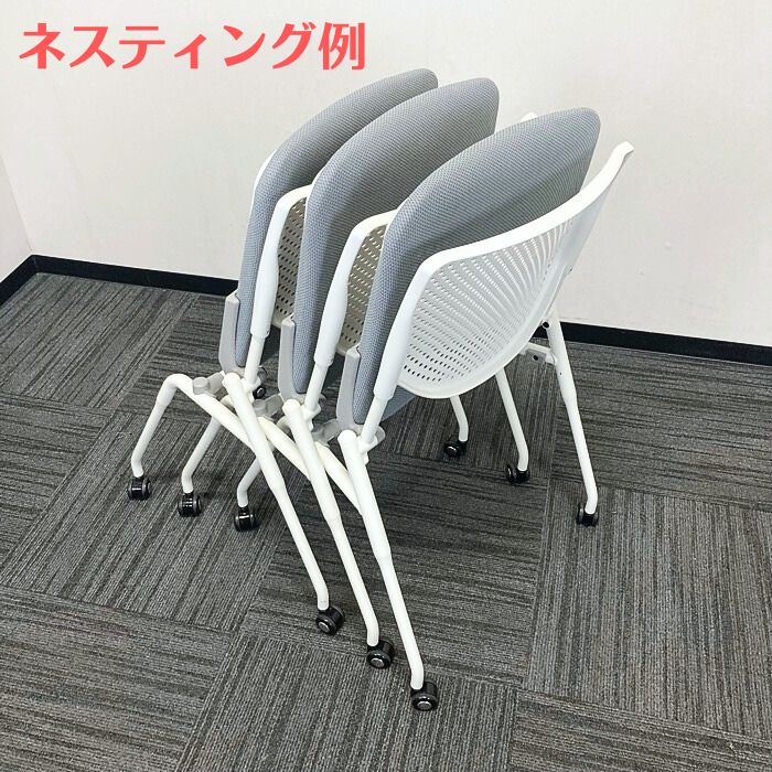 オカムラ プロスタックシリーズ ミーティングチェア[ネスティングタイプ] 8140WZ FSN5 背:ホワイト/座:グレー 2020年製 中古