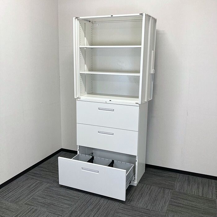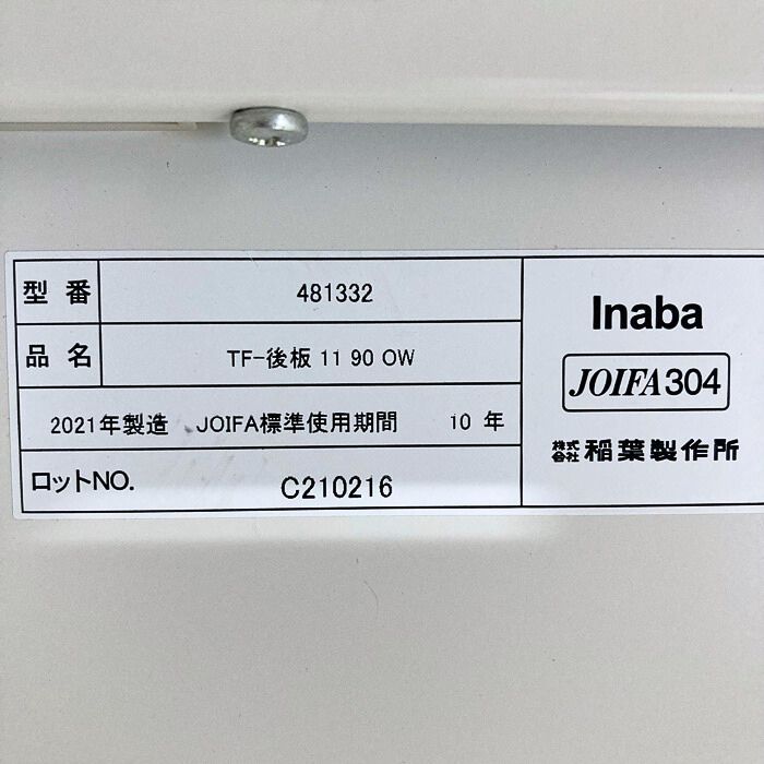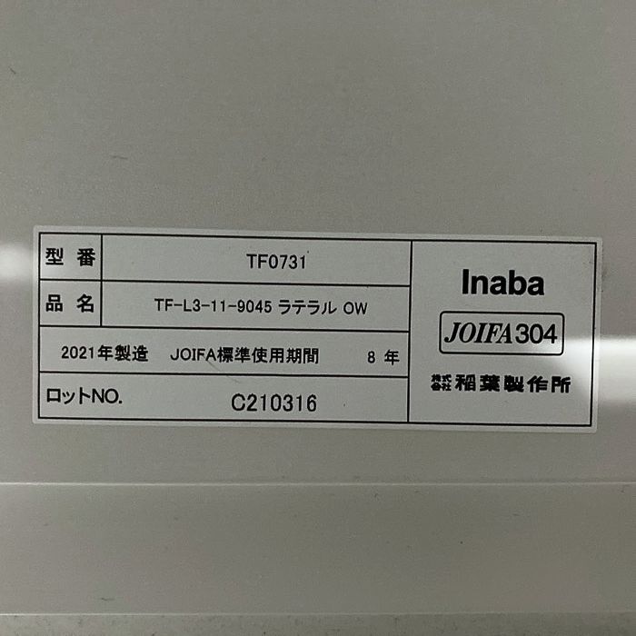 イナバ TFシリーズ 両開き書庫+ラテラルキャビネット W900×D450×H2150 オプティホワイト 2021年製 中古