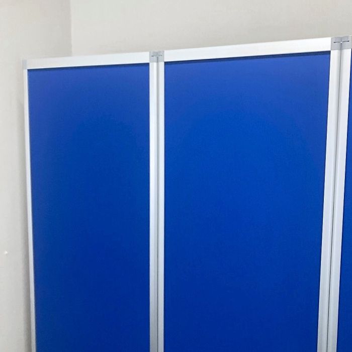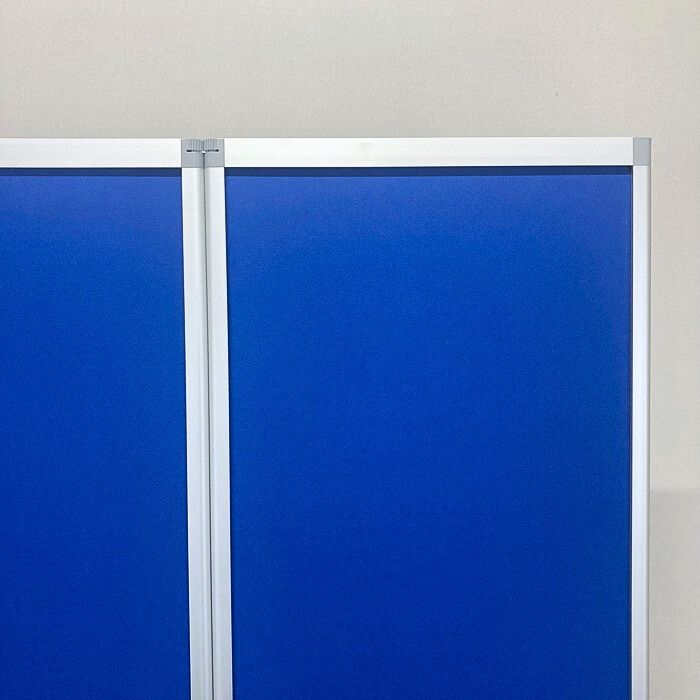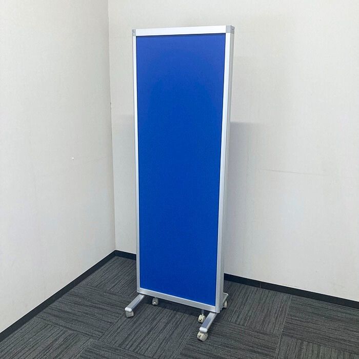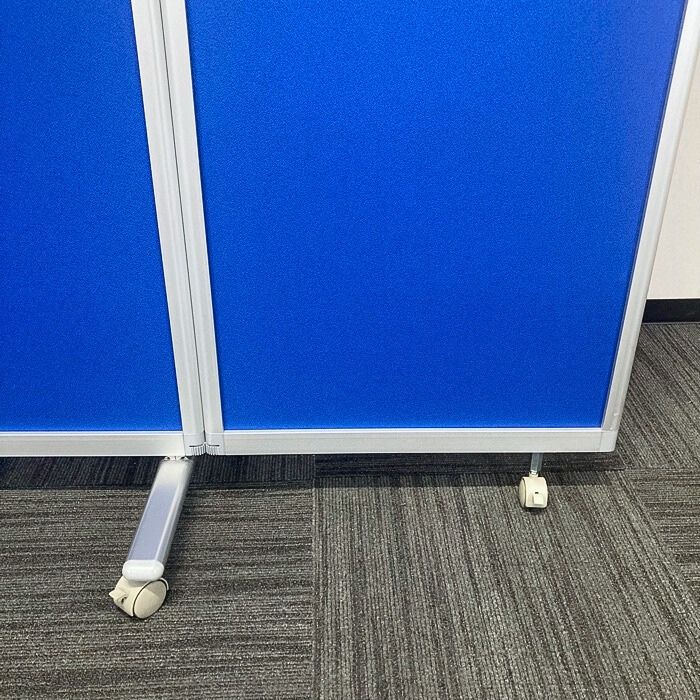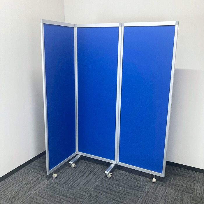 3連折りたたみパーティション[キャスター付き] W1800×H1800 ボード面:ブルー/フレーム:シルバー 中古
