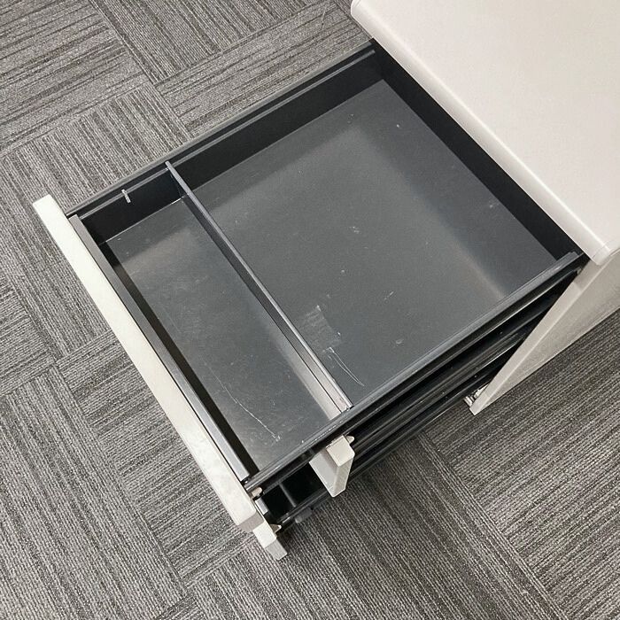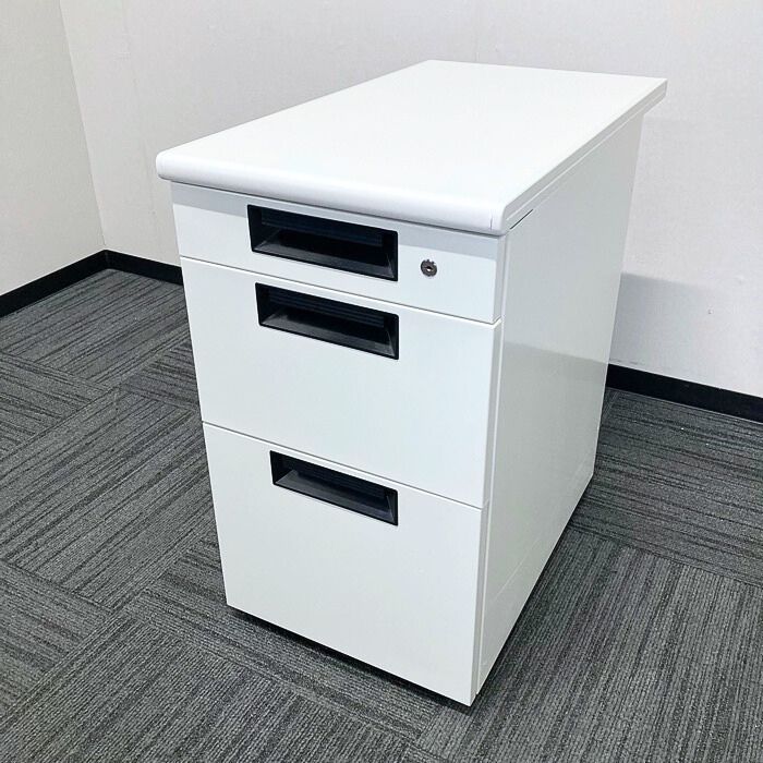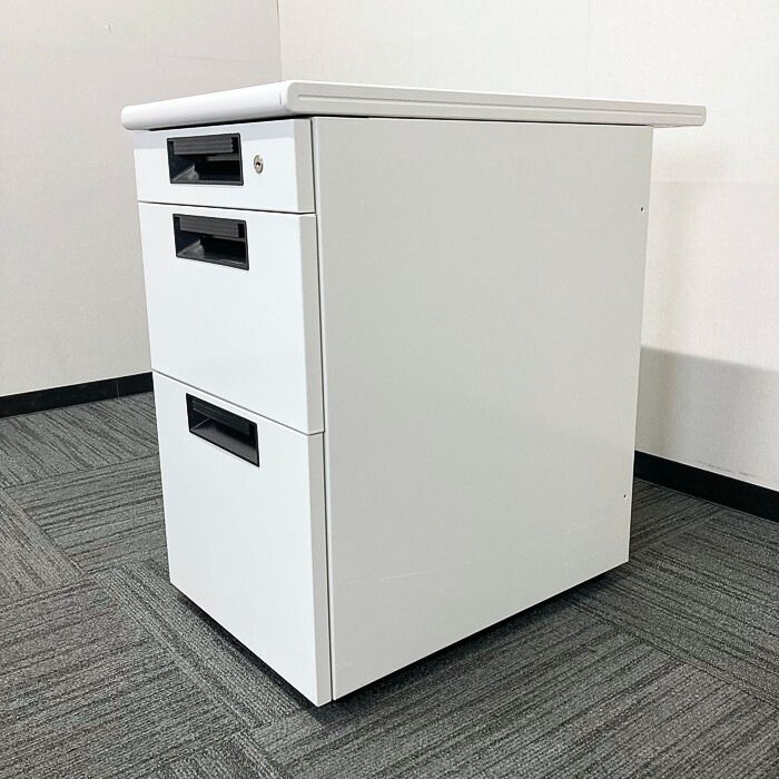 プラス フラットラインシリーズ 3段脇机 W400×D700×H700 ホワイト 中古
