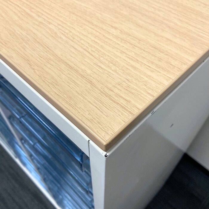 オカムラ レクトラインシリーズ クリスタルトレイ 4B03AD W900×D450×H1115 天板:ネオウッドライト/本体:ネオホワイト 2017年製 中古