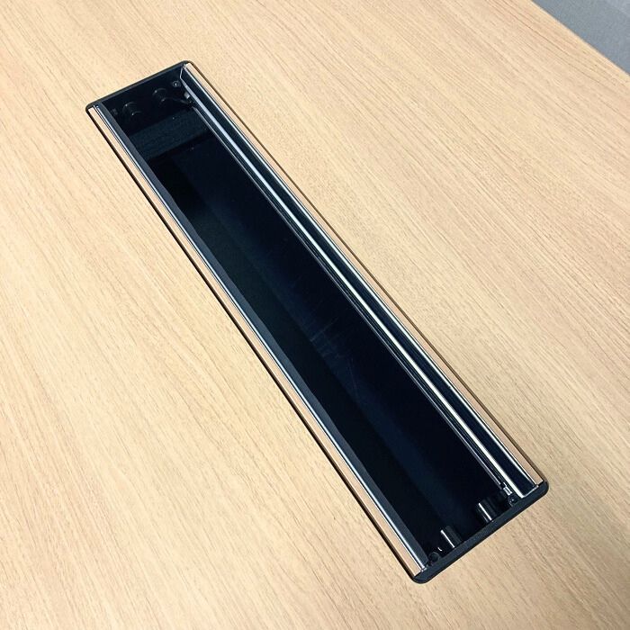 天板中央にはOAタップを収納可能なボックス配線を備えており、モバイル類の充電を行いながらのお打ち合わせが可能です。