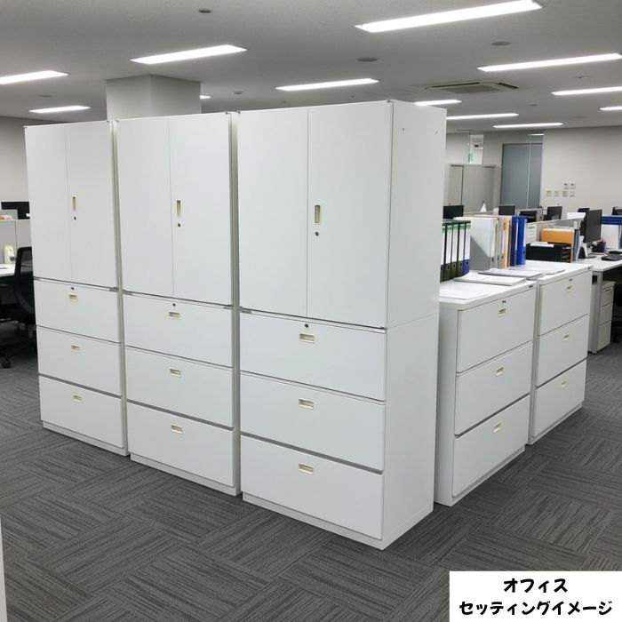 イトーキ シンラインキャビネットシリーズ 両開き書庫+3段ラテラル W900×D450×H2136 ホワイト 中古