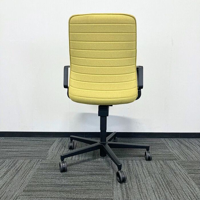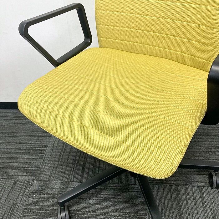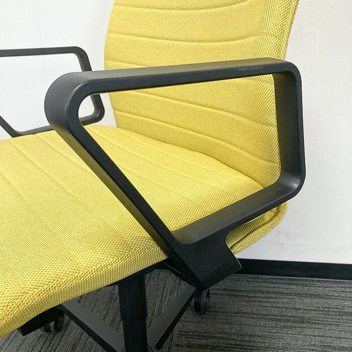 コクヨ ファブレシリーズ オフィスチェア[サークル肘] ストライプタイプ 背座:オリーブイエロー/フレーム:ブラック 2023年製 中古