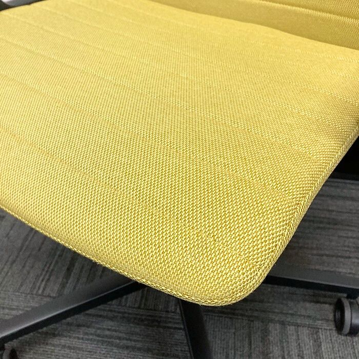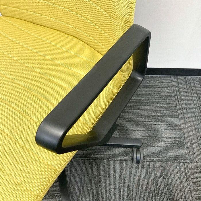 コクヨ ファブレシリーズ オフィスチェア[サークル肘]  ストライプタイプ 背座:オリーブイエロー/フレーム:ブラック 2023年製 中古