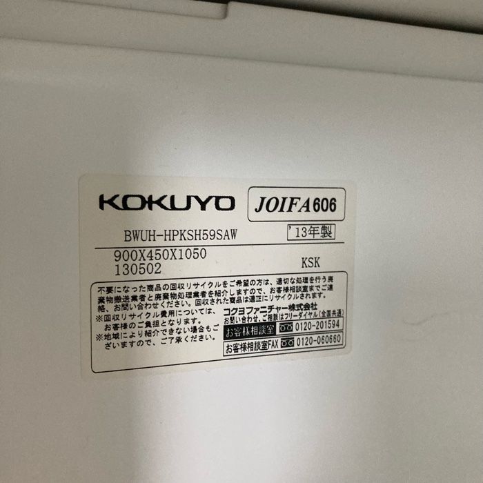 コクヨ エディアシリーズ シャッター扉型書庫 BWUH-HPKSH59SAW W900×D450×H1050 ホワイト 2013年製 中古 ※ベース無し ➉