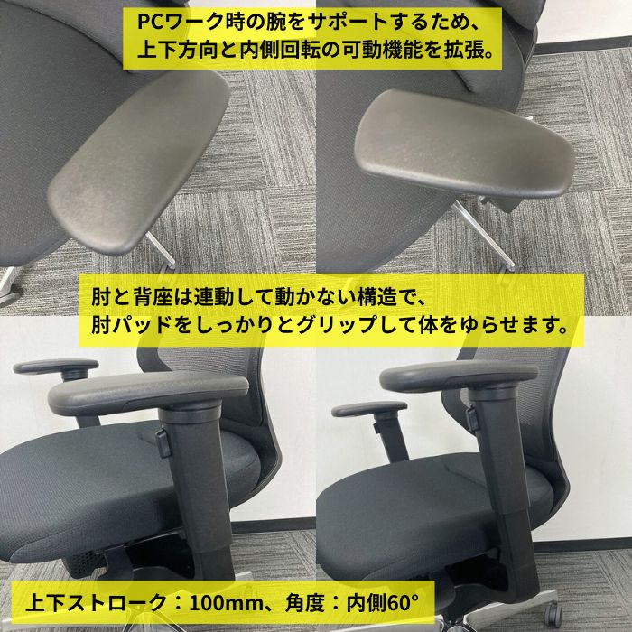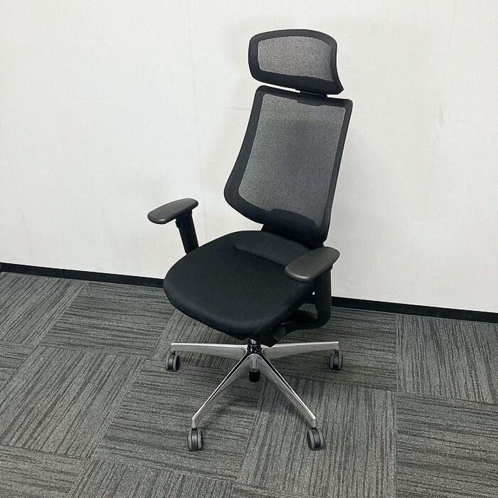 コクヨ イングチェアシリーズ オフィスチェア[可動式グリップアーム] CRS-G3402E6G4B6 メッシュタイプ ヘッドレスト付き ブラック 2025年製 中古