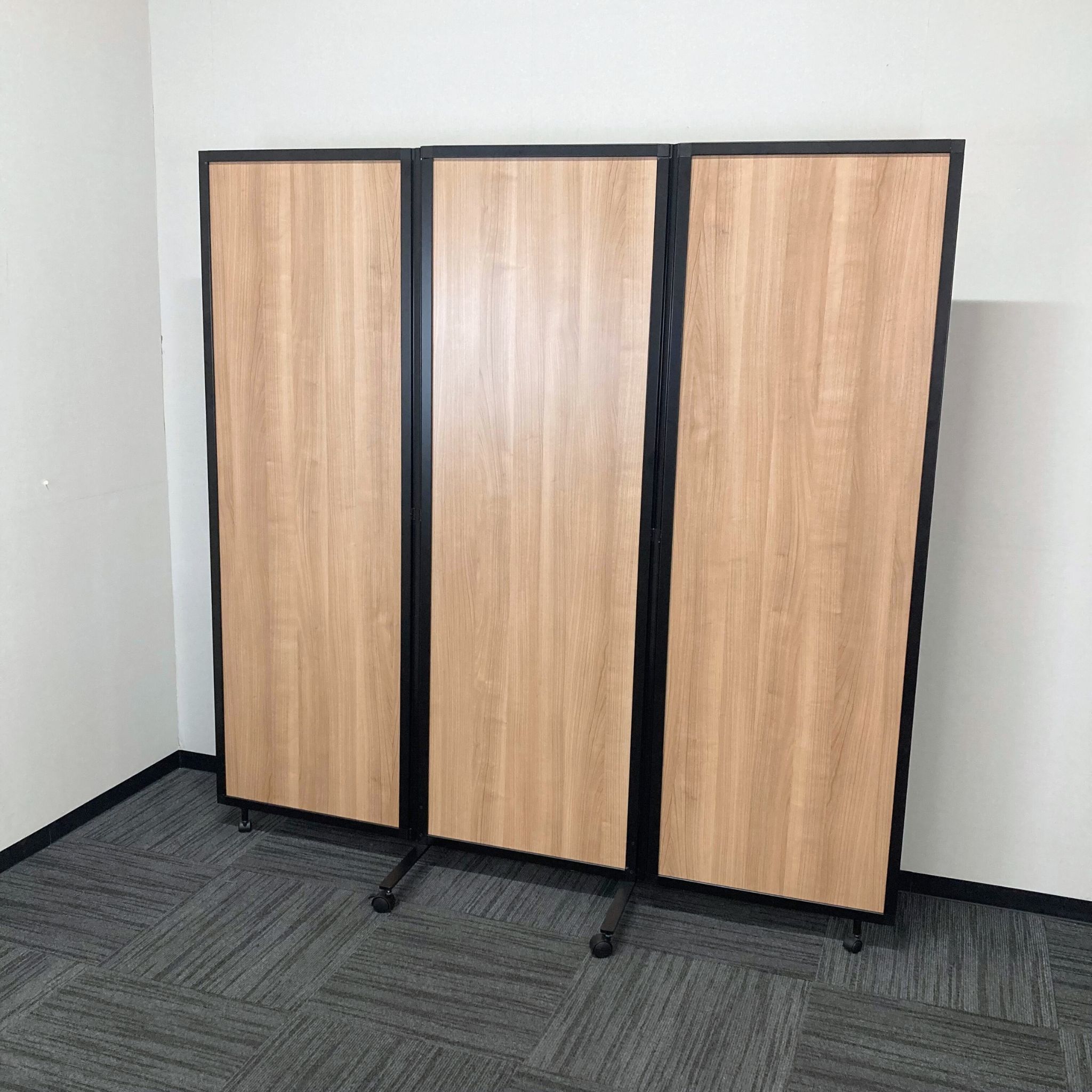 3連折りたたみパーティション[キャスター付き] W1800×D500×H1800 ボード面:ナチュラル/フレーム:ブラック 中古
