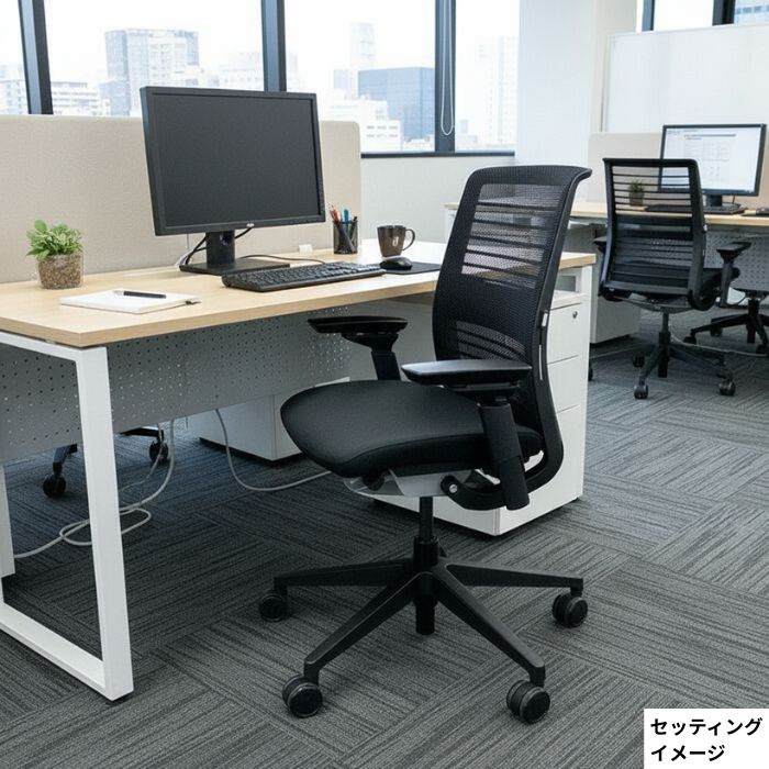 スチールケース シンクチェアシリーズ オフィスチェア HPD可動肘 3Dニット ブラックフレーム 可動ランバー ブラック 2018年製 中古