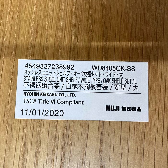 無印良品 ステンレスユニットシェルフ WD8405OK-SS W840×D450×H1755 オーク 2020年製 中古