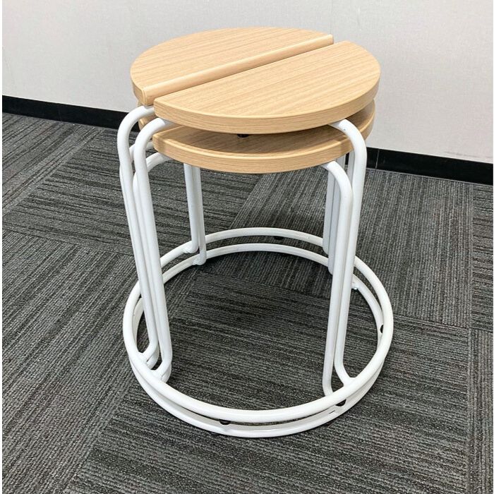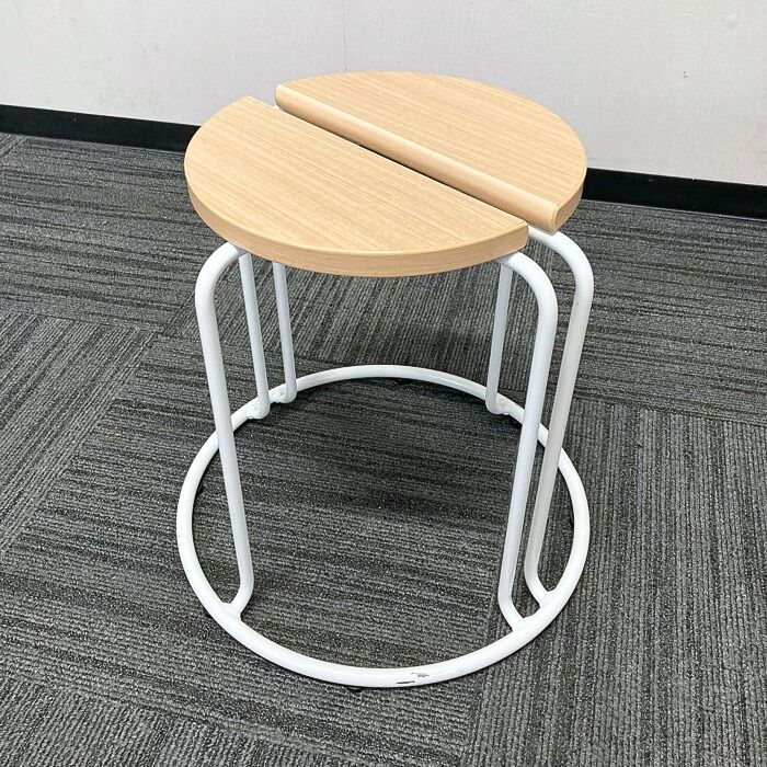 イトーキ イノーバシリーズ スツール[2脚セット販売] BMS-044ST-W998 Φ445×H420 座:ファインウォールナットL/フレーム:ホワイト 2020年製 中古 ➉